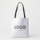 Add your own modern style rectangular black or other dark colour business logo image to create promotional all over print tote bag.