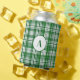 Modern White and Green Plaid Pattern Can Cooler