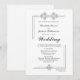 A modern white wedding invitation featuring a stylish silver faux glitter border and script text. This invitation includes information about both the ceremony and reception details. To ensure your guests respond an RSVP reminder has been included at the bottom of the invitation. You can remove this text if you wish.