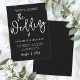 This simple and elegant wedding invitation features a clean, modern layout with a solid black background and crisp white fonts for a bold and timeless look.