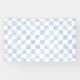 Simple and classy light blue squares created with hand-drawn strokes and composed of two-coloured crossed lines forming a soft baby blue chequered pattern on a white aesthetic grid background. A trendy and unique geometric design.