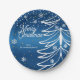 Modern White Christmas Tree & Snowflakes Paper Plate