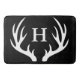Simple and elegant modern white deer antlers and black background with custom monogrammed text! Great for modern country or antlers decor. Modern farmhouse or rustic chic this bath mat adds that bold focal point you were looking for.