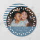 This stylish, modern photo card doubles as a Christmas tree ornament! Simply punch a hole through the top circle in the design. Then put a ribbon through the hole and tie it into a loop! The colour block at the bottom can be customised to any colour you'd like (shown in dusty blue)! The back of the card contains hand sketched white stripes over a dusty blue background. Please contact me (Tracey) at orabellaprints@outlook.com for design or product enquiries.