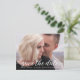 Customise with your own photo on this "Save the Date" wedding postcard with white elegant, modern script. Announce your engagement, personalise the text with your upcoming wedding details. Congratulations!