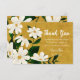 Retro modern bridal shower thank you card, featuring watercolor white flowers and dark green botanicals on a gold textured background. All element including flowers and green botanicals are moveable, meaning you can arrange them which ever way you like, creating a true one of a kind invitation.