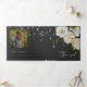 Modern White Gardenias on Black Sparkle Wedding Tri-Fold Invitation