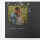 Introducing our enchanting wedding invitation. Delicately crafted on a charcoal black backdrop, this invitation exudes modern elegance with a touch of whimsy. Adorned with shimmering stars and glittering accents, it captures the magic of a starlit garden soirée or an enchanted holiday ceremony. The pristine white gardenia petals add a dash of romance, while the elegant script font in white text and simple modern font lends a sophisticated touch. With its simple yet stylish design, our invitation sets the perfect tone for your special day. Created by Simply Farmhouse Press.