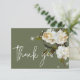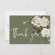Modern White Gardenias on Sage Sparkle Wedding Thank You Card