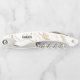 Modern white gold marble corkscrew with a gold monogram and black name. Personalise with your initial and name.