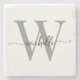 Modern White Grey Custom Monogram Name Script Stone Coaster