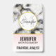 Name badge with a classy, modern marbled pattern. White, black and smoky grey marble with thin ribbons of faux-gold swirls throughout the pattern.