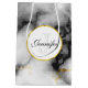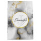 A personalised gift bag with a classy, modern marbled pattern. White, black and smoky grey marble with thin ribbons of faux-gold swirls throughout the pattern.