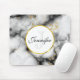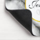 Modern White Grey Marble with Gold Ribbon Monogram Mouse Mat