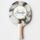 Modern White Grey Marble with Gold Ribbon Monogram Ping Pong Paddle