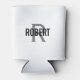 Modern, masculine white and grey monogram name can cooler. Personalise with your initial and name.