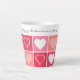 A trendy modern Valentine's Day latte mug with white hearts and red/pink colours. Personalise by adding a personal Valentine's message or name in a beautiful handwritten script font.