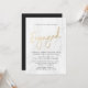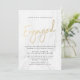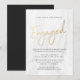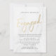 Stylish modern wedding engagement party invitations featuring a faux gold foil trendy script font, white marble background, and placeholders for your custom engagement party information. The back of the gold engagement party invites can be changed to a colour of your choice with the Customise tool.
