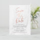 Modern White Marble Rose Gold Script Save The Date