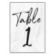 Add a stylish touch to your wedding reception with custom table cards. The wedding table cards feature a white marble background and a trendy script font. Additional numbers can be found in the collection below.