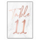 Add a stylish touch to your wedding reception with custom table cards. The wedding table cards feature a white marble background and a faux rose gold trendy script font. Additional numbers can be found in the collection below.