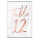 Add a stylish touch to your wedding reception with custom table cards. The wedding table cards feature a white marble background and a faux rose gold trendy script font. Additional numbers can be found in the collection below.