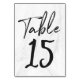 Add a stylish touch to your wedding reception with custom table cards. The wedding table cards feature a white marble background and a trendy script font. Additional numbers can be found in the collection below.