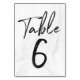 Add a stylish touch to your wedding reception with custom table cards. The wedding table cards feature a white marble background and a trendy script font. Additional numbers can be found in the collection below.