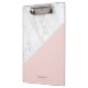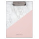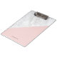 A modern clipboard featuring white marble with pink block accent. Personalise this clipboard by adding your own details. Other colours are available.