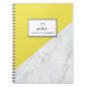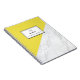 Modern White Marble Yellow Personalised Notebook. Stylish and modern notebook featuring faux marble background with yellow accent. Personalise this notebook by adding your own details. Other colours are available.