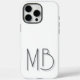 Modern White Monogram Initials Contemporary Phone 16 Pro Max Cases features a your custom personalised monogram in modern script typography. Perfect for family and friends for birthdays, Christmas, holidays, Mother's Day, Father's Day and more. Designed by ©2024 Evco Holidays www.zazzle.com/store/evcoholidays