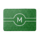 Modern White Monogram on Green Geometric Bath Mat