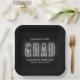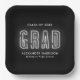 Modern graduation paper plates featuring "Grad" displayed in white neon lettering with a black background (or color of your choice). Personalize the black and white graduation plates with the graduate's name, school name, and graduation year. The personalized graduation paper plates are perfect to use for both high school and college graduation parties!