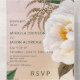 AVAILABLE WITH OR WITHOUT A QR CODE TO SCAN IN THE RSVP AREA. This design features a large white peony with a soft yellow centre, greenery and cotton bolls on a tan brown background. Add a QR code to your invitation so that gusts can quickly access your wedding Website for details, directions, menu options, and more, or add your gift registry Web URL. Personalised All-In-One invitations are a unique combination of both a beautifully printed custom invitation with an easy to tear off perforated RSVP postcard. And they are so easy to use! You simply fold, then seal the back flap with the three included clear stickers, and mail. And when your guests receive your custom invite, they just tear the perforated RSVP Card off and drop it back in the mail to you!