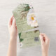 AVAILABLE WITH OR WITHOUT A QR CODE TO SCAN IN THE RSVP AREA. This design features a large white peony with a soft yellow centre, greenery and cotton bolls on a green watercolor background. Add a QR code to your invitation so that gusts can quickly access your wedding Website for details, directions, menu options, and more, or add your gift registry Web URL. Personalised All-In-One invitations are a unique combination of both a beautifully printed custom invitation with an easy to tear off perforated RSVP postcard. And they are so easy to use! You simply fold, then seal the back flap with the three included clear stickers, and mail. And when your guests receive your custom invite, they just tear the perforated RSVP Card off and drop it back in the mail to you!