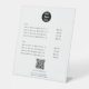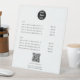 A modern business pedestal sign design showcasing your business logo, business qr code, business website and social media handle as well as price lists. A minimalist personalised QR code, business logo and social media business signs. A simple and professional way to allow your customers to scan, pay, view menus, price lists etc. Customise the text and make it your own..