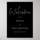 Modern White Script Black Welcome to Wedding. Welcome is at the top in a stylish set script and the rest of the text you can easily personalise.