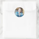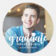 Modern White Script Graduation Photo Name Classic Round Sticker