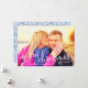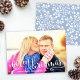 Simply chic holiday photo card features a "Merry Christmas" white script overlay with photo on front and modern berry pattern on the back. The blue background colour on the back can be changed to coordinate with your photo via "customise it" / Edit / Background colour.