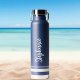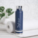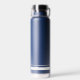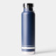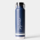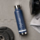 Modern White Stripes Navy Wedding Water Bottle. Personalise this stylish water bottle with your custom name.