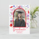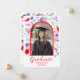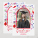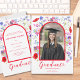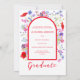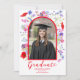 Colourful modern wildflower graduate photo high school graduation announcement card with modern elegant typography script in bold hot poppy red with red framed arch. Beautiful summer floral watercolor artwork includes poppies, cornflowers and foliage original artwork by artist Catherine Sweetman.