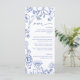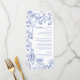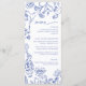 Elevate your event tables with this timeless blue and white floral wedding or bridal shower menu. Featuring delicate botanical illustrations in a refined chinoiserie-inspired style, this elegant design blends classic romance with fresh, modern sophistication. The soft blue florals frame your menu selections beautifully, while the graceful script heading adds a touch of effortless charm—perfect for garden celebrations, formal receptions, or a vintage-inspired soirée.