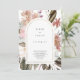 Wildflowers surround an arch frame with gold border. Monogram and floral crest on back of invitation.