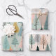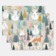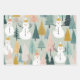 Modern Winter Pastel Snowman Foxes & Trees Greens Wrapping Paper Sheet