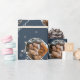 Modern Winter Snowflakes Photo Navy Blue Christmas Wrapping Paper