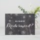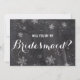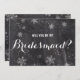 Modern winter snowflakes chalkboard Will you be my bridesmaid card. Stylish, elegant and original black chalkboard with white snowflakes background. A black and white elegant wedding theme perfect for winter wonderland, Christmas wedding theme.The text is fully customisable