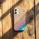 Add a touch of modern style to your everyday essentials with this chic personalized iPhone case. Featuring a warm wood grain texture paired with soft diagonal color block stripes in blush, peach, and teal, this design blends natural elegance with contemporary flair.