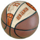 Modern Wood Player Name Team Number Basketball. Personalise it with team name, player number and name. The design has two basketball images on the left and the right side on a wood court floor background. A great keepsake and a gift to remember the favourite sport.