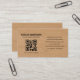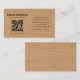 Showcase your professional style with this modern minimalist business card featuring a natural wood texture background and scannable QR code.