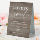 This stunning sign combines rustic charm with contemporary design, featuring an elegant script that beautifully conveys the message "Love Is Sweet." Perfect for weddings, baby showers, or anniversaries, it adds a warm, inviting touch to your celebration.